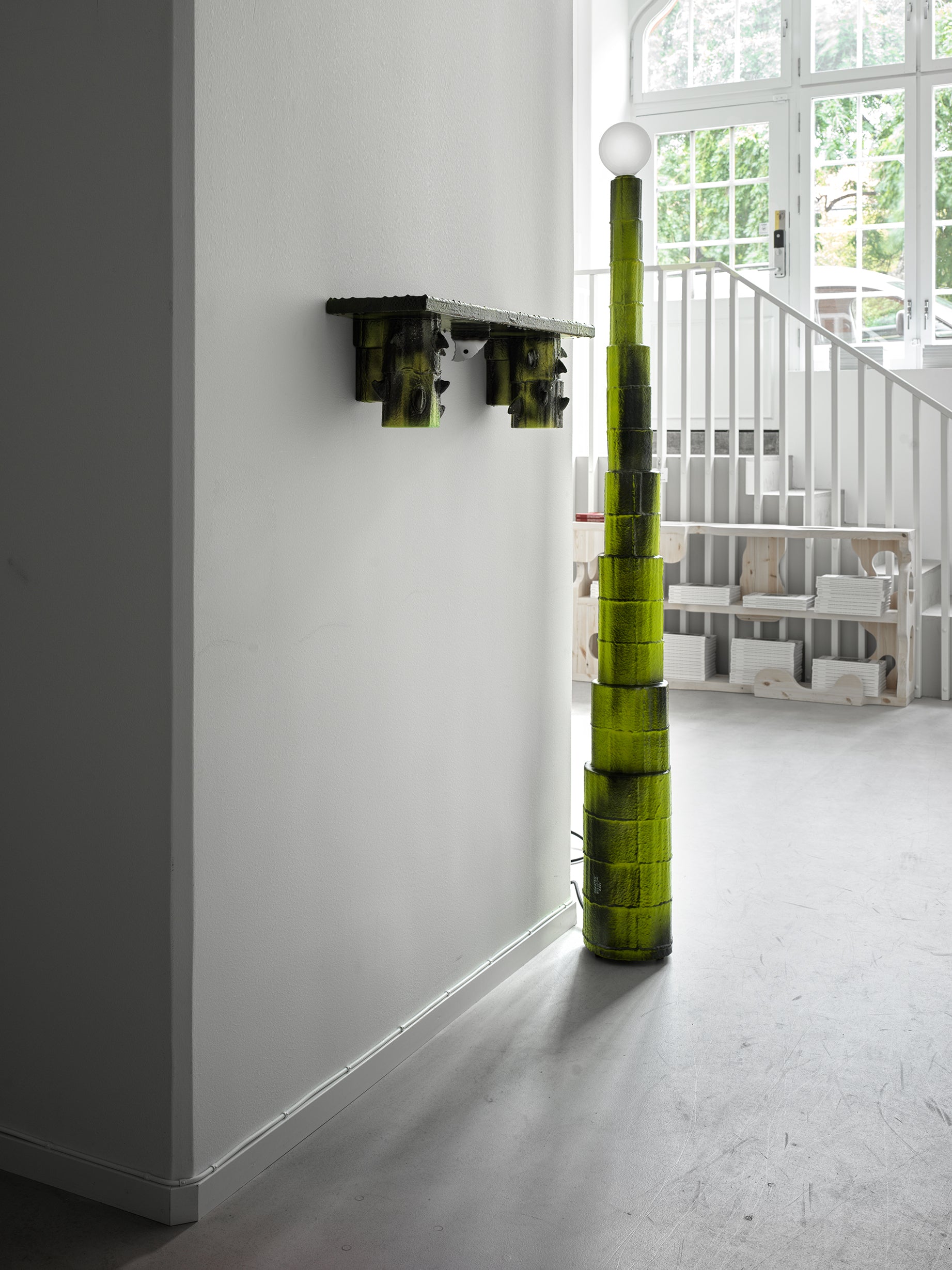 Styrofoam, MDF, hot glue, resin, spray paint, light switch, lightbulb H: 185 cm (without lightbulb).